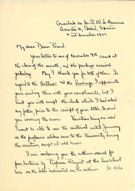 He later wrote Dean Roscoe Pound from Madrid, asking for his recommendation